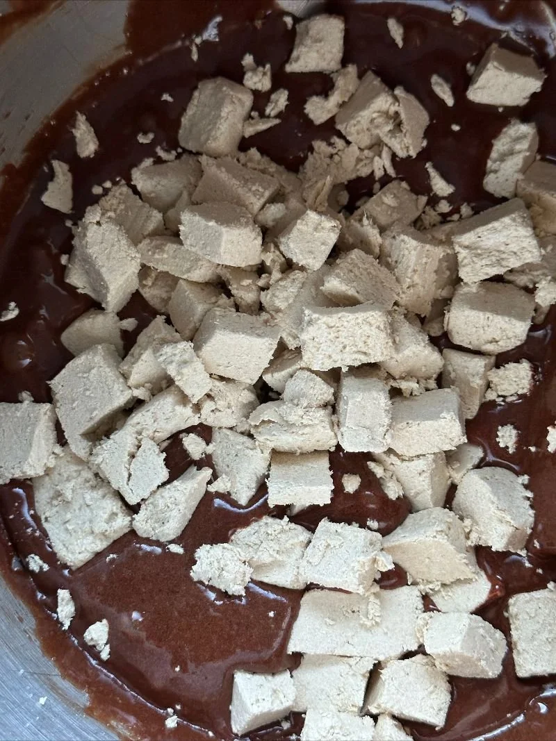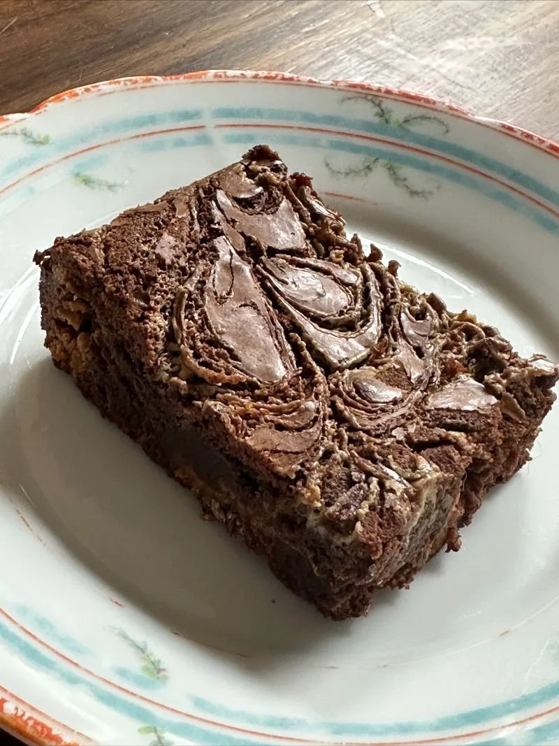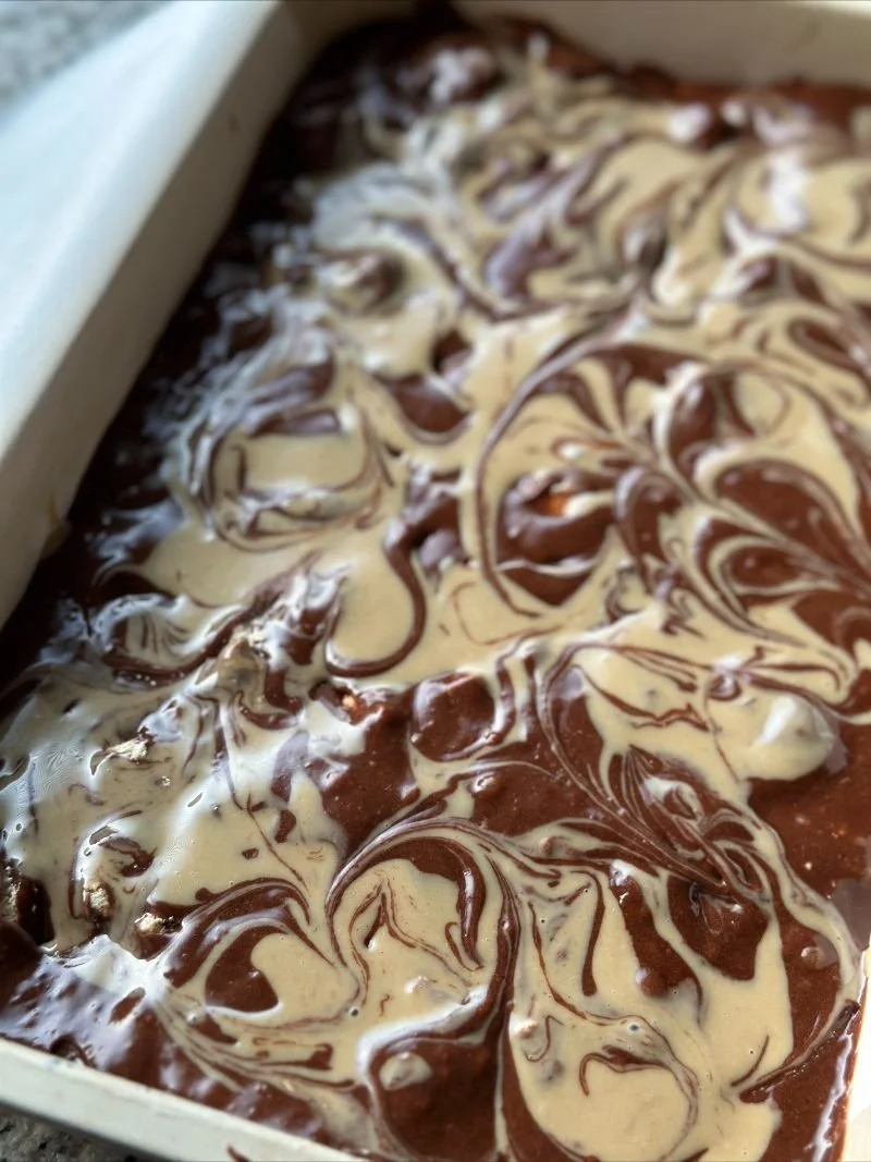 Sinds we dit recept hebben ontdekt, maken we nooit meer gewone brownies. Deze variant is echt een delicatesse dankzij de toevoeging van stukjes helva – een Arabische zoetigheid op basis van sesampasta (tahini). De mooie swirls van tahini bovenop geven de brownies een nootachtige smaak en tillen ze naar een hoger niveau. Bovendien worden ze alleen maar lekkerder en fudgier naarmate ze langer staan. Op dag twee en drie zijn ze ronduit goddelijk – ze smelten gewoon in je mond! De speciale ingrediënten, zoals helva en tahini, vind je bij de Turkse winkel.